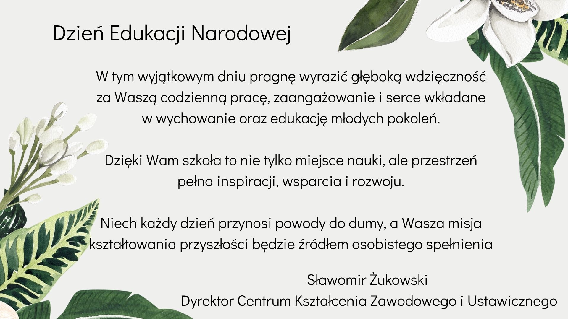 W tym wyjątkowym dniu pragnę wyrazić głęboką wdzięczność za Waszą codzienną pracę, zaangażowanie i serce wkładane w wychowanie i edukcaję młodych pokoleń. Dzięki Wam szkoła to nie tylko miejsce nauki, ale przestrzeń pełna inspiracji, wsparcia [...]