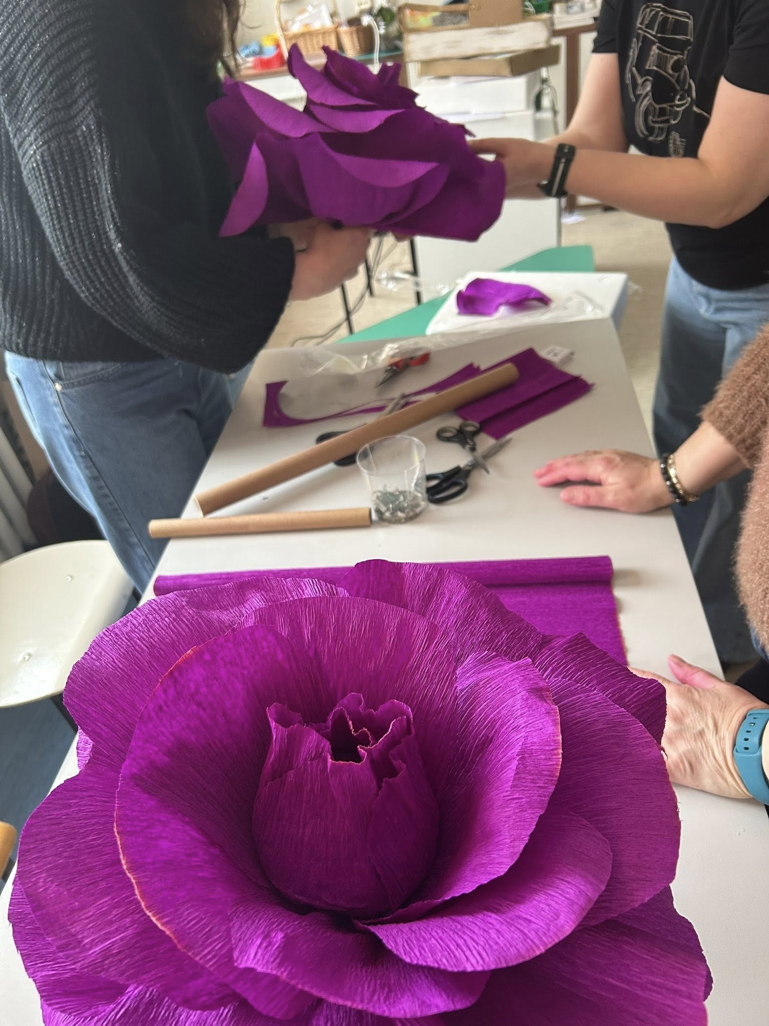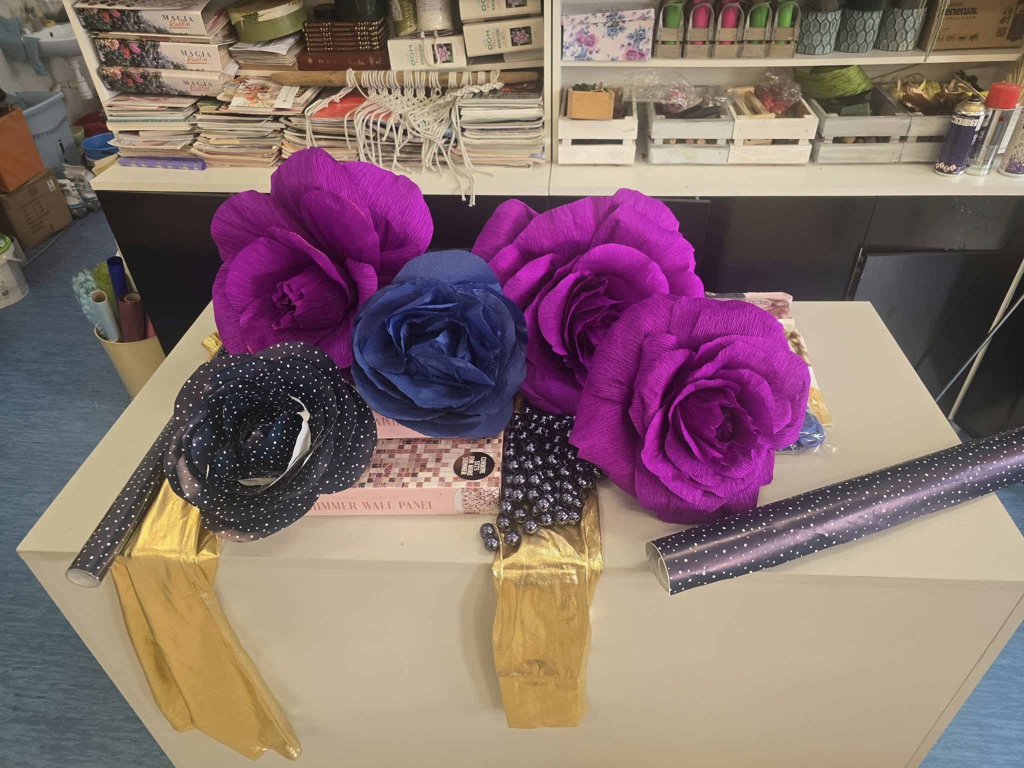 Kwiaty z krepiny wykonane przez słuchaczki KKZ Florysta. Ręcznie tworzone, pełne kolorów i kreatywności — nasze kwiaty z krepiny to dowód na to, że wyobraźnia nie zna granic!