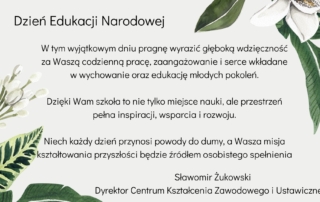 W tym wyjątkowym dniu pragnę wyrazić głęboką wdzięczność za Waszą codzienną pracę, zaangażowanie i serce wkładane w wychowanie i edukcaję młodych pokoleń. Dzięki Wam szkoła to nie tylko miejsce nauki, ale przestrzeń pełna inspiracji, [...]